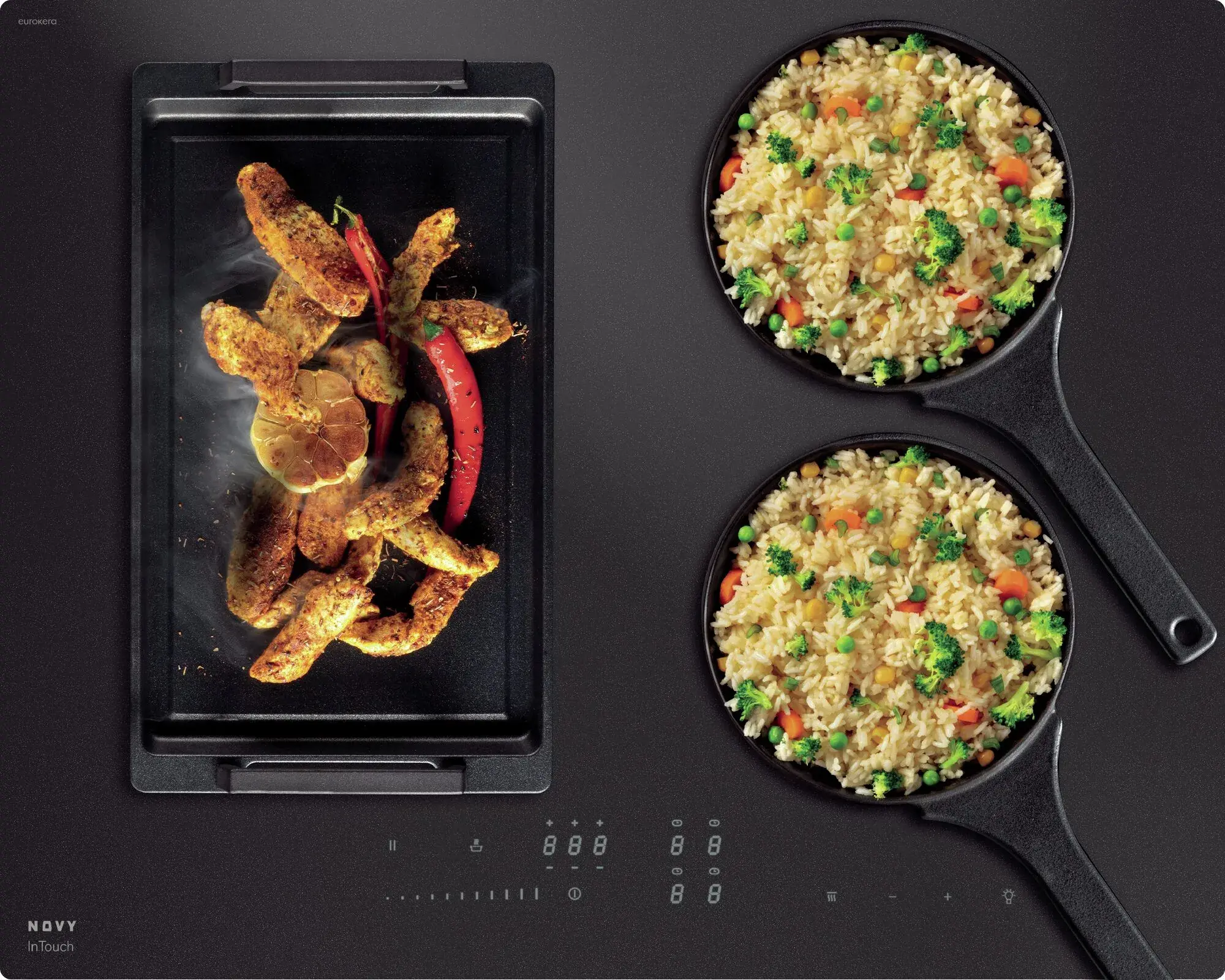 Novy Kochfelder lassen sich intuitiv bedienen. Egal ob mit Gas, mit Induktion oder mit beidem gekocht wird ā Novy bietet das Kochfeld, das am besten zu den eigenen Kochgewohnheiten passt. Ein besonderes Highlight im Portfolio ist die unsichtbare Novy Undercover: Die Induktionstechnologie ist vollstƤndig in eine Dekton-Arbeitsplatte integriert, es wird direkt auf der Arbeitsplatte gekocht und gebraten.
